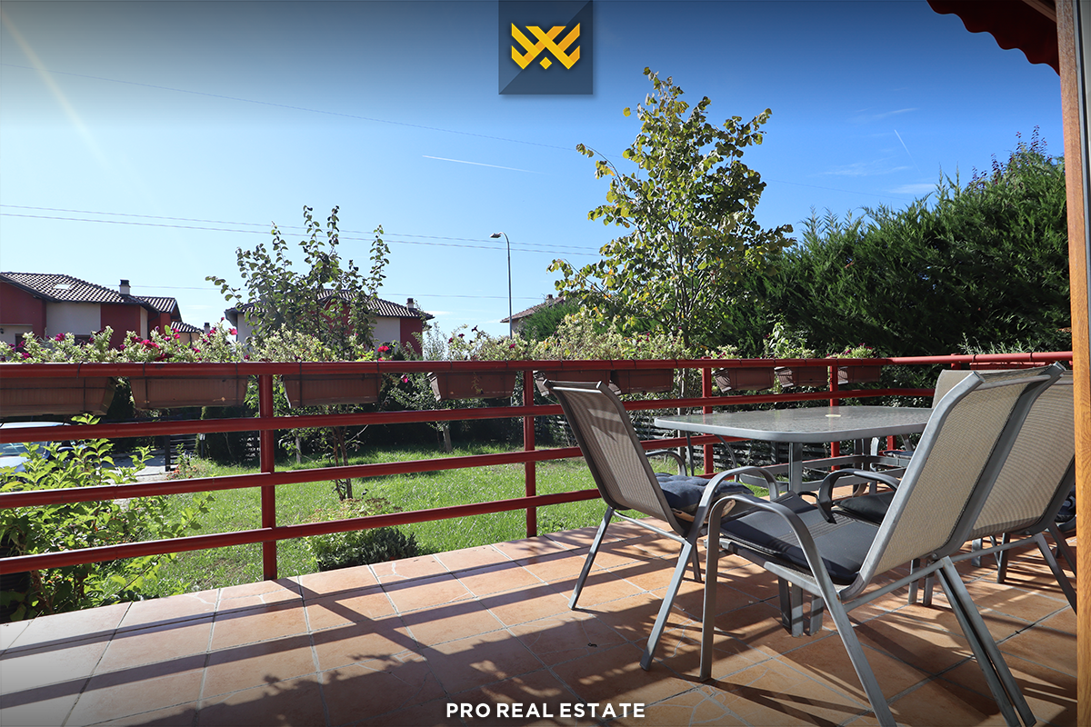 Në përdhes ka qëndrimin ditor, kuzhinë me tryezari, tualet dhe terasë;