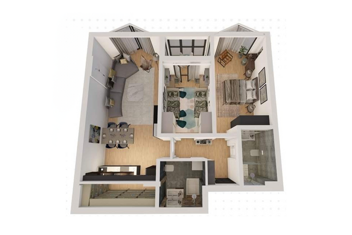 *Banesa 82.83m² ka orientim nga lindja dhe perëndimi dhe ka këtë renditje të hapësirave të brendshme: qëndrim ditor, kuzhinë, dy dhoma gjumi, dy banjo, depo dhe një ballkon.