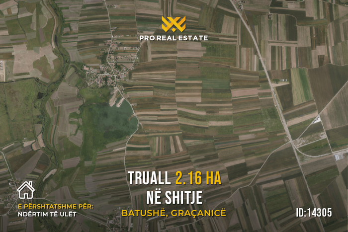 Es wird ein Grundstück mit einer Fläche von 2,16 Hektar zum Verkauf angeboten, gelegen in Batusha, Graçanicë.