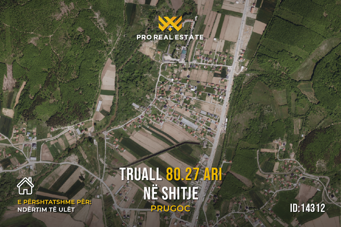 Zum Verkauf steht ein Grundstück mit einer Fläche von 80,27 Ar, gelegen in Prugoc, an der Straße Prishtinë - Podujevë.