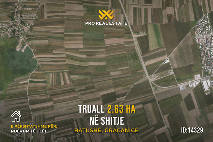 Zum Verkauf steht ein Grundstück mit einer Fläche von 2,63 Ha, gelegen in Batushë, Graçanicë.