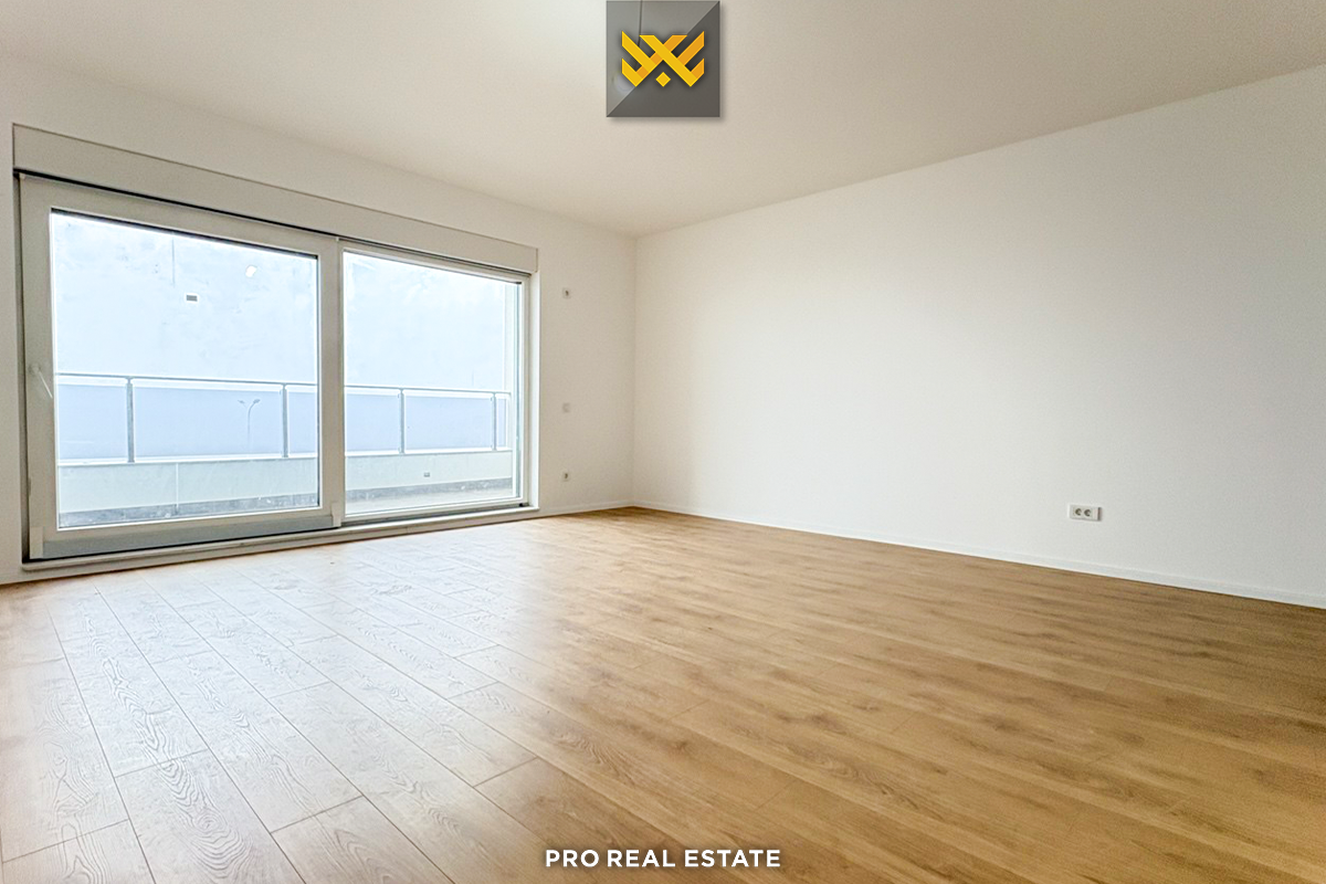 Die Wohnung hat eine Ausrichtung nach Westen, Süden und Norden und verfügt über folgende Anordnung der Innenräume: Wohnzimmer, Küche, zwei Schlafzimmer, ein Badezimmer, WC, Abstellraum und Balkon.