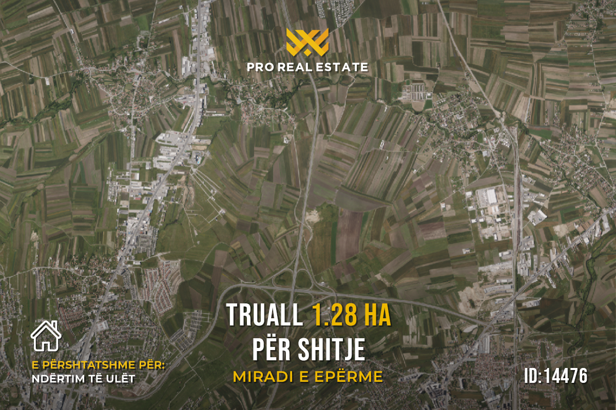 Es wird ein Grundstück mit einer Fläche von 1,28 Ha zum Verkauf angeboten, gelegen in Miradi e Epërme, Fushë Kosovë.