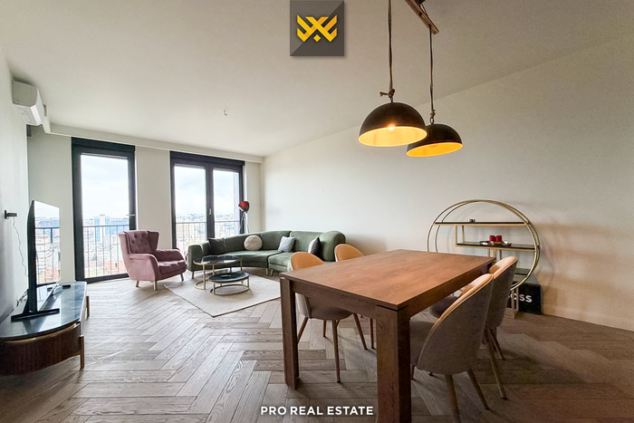 Die Wohnung hat eine Ausrichtung nach Osten und Süden und verfügt über folgende Raumaufteilung: Wohnzimmer, Küche, zwei Schlafzimmer, ein Badezimmer und zwei Balkone.