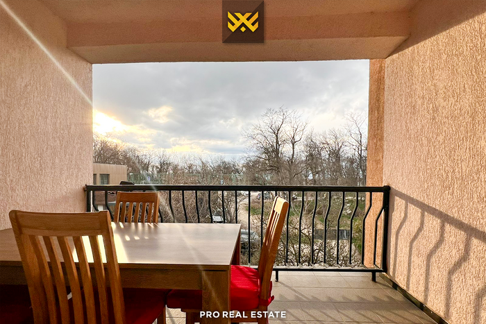 Die Etage hat eine Ausrichtung nach Osten und Westen und verfügt über folgende Anordnung der Innenräume: Wohnzimmer, Küche, zwei Schlafzimmer, ein Badezimmer und zwei Balkone.