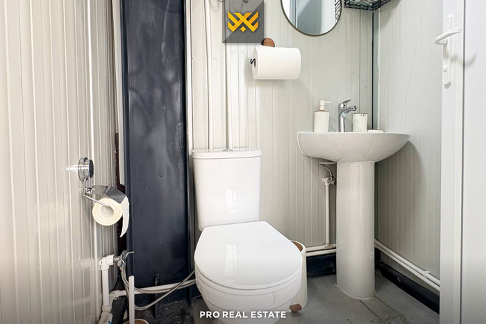 Der Raum besteht aus 3 funktionalen Bereichen, hat 2 Badezimmer und eine Ausrichtung in alle Richtungen, was tagsüber natürliche Beleuchtung ermöglicht.
