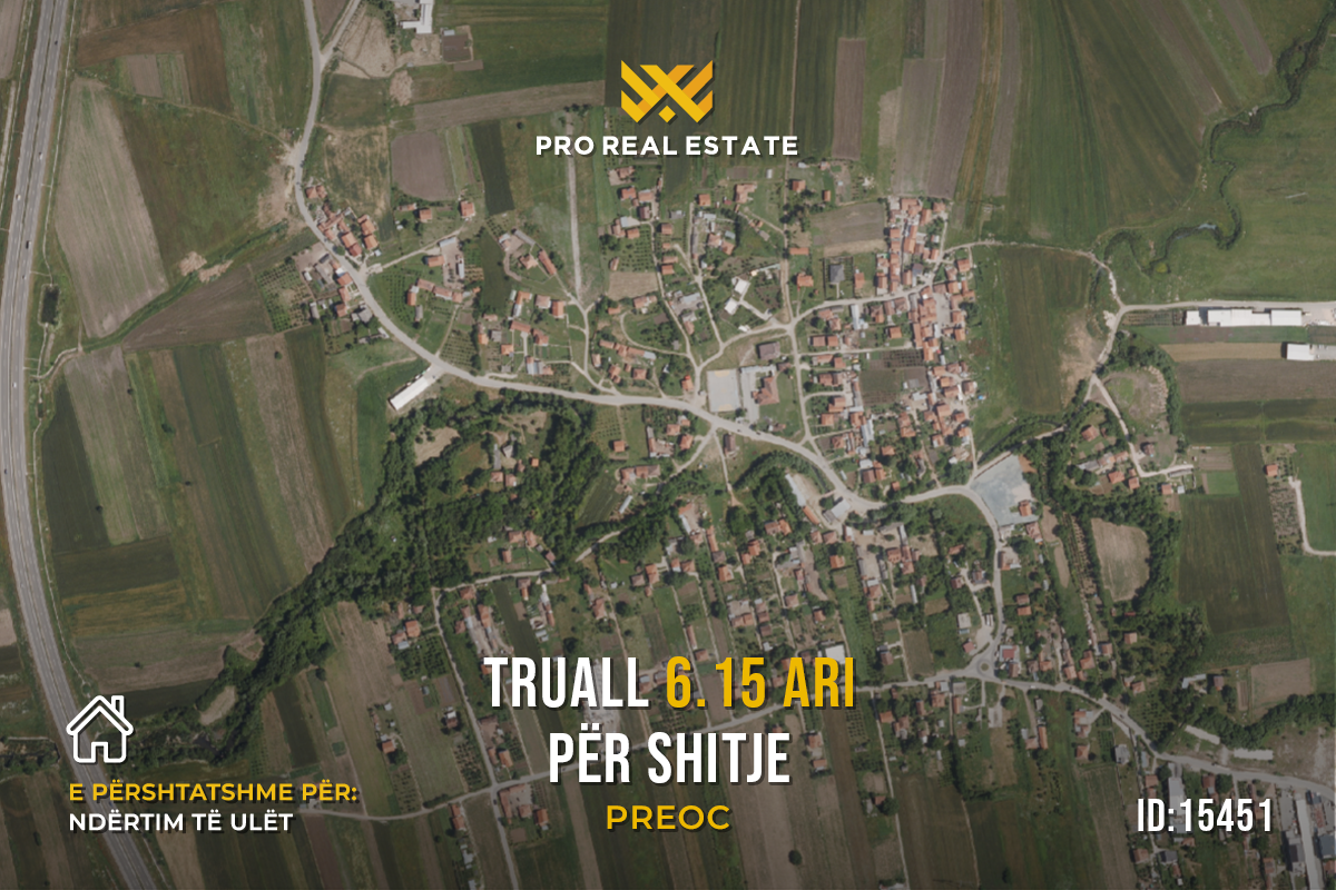 Zum Verkauf steht ein Grundstück mit einer Fläche von 6,15 Ar, gelegen in Preoc, Graçanicë.