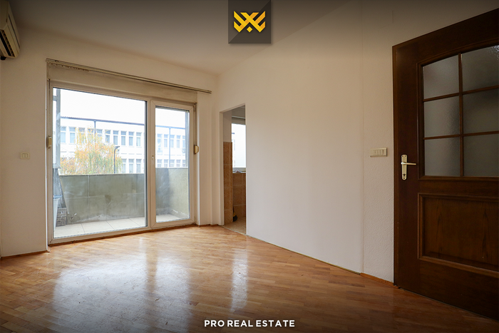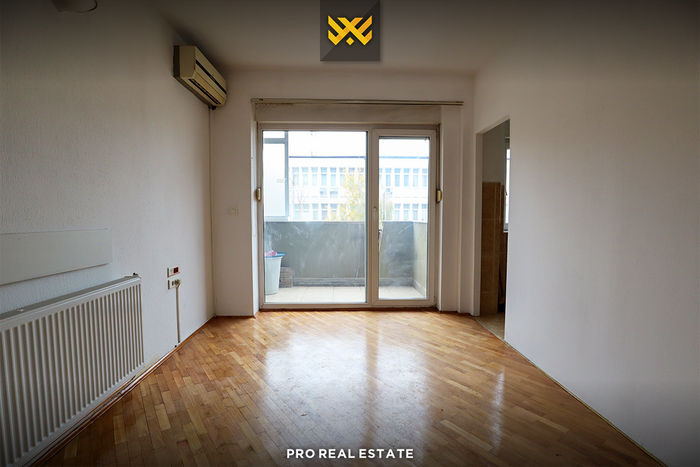Die Wohnung hat eine Ausrichtung nach Osten, Süden und Norden und verfügt über folgende Innenaufteilung: drei Arbeitsräume, ein Badezimmer und zwei Balkone.