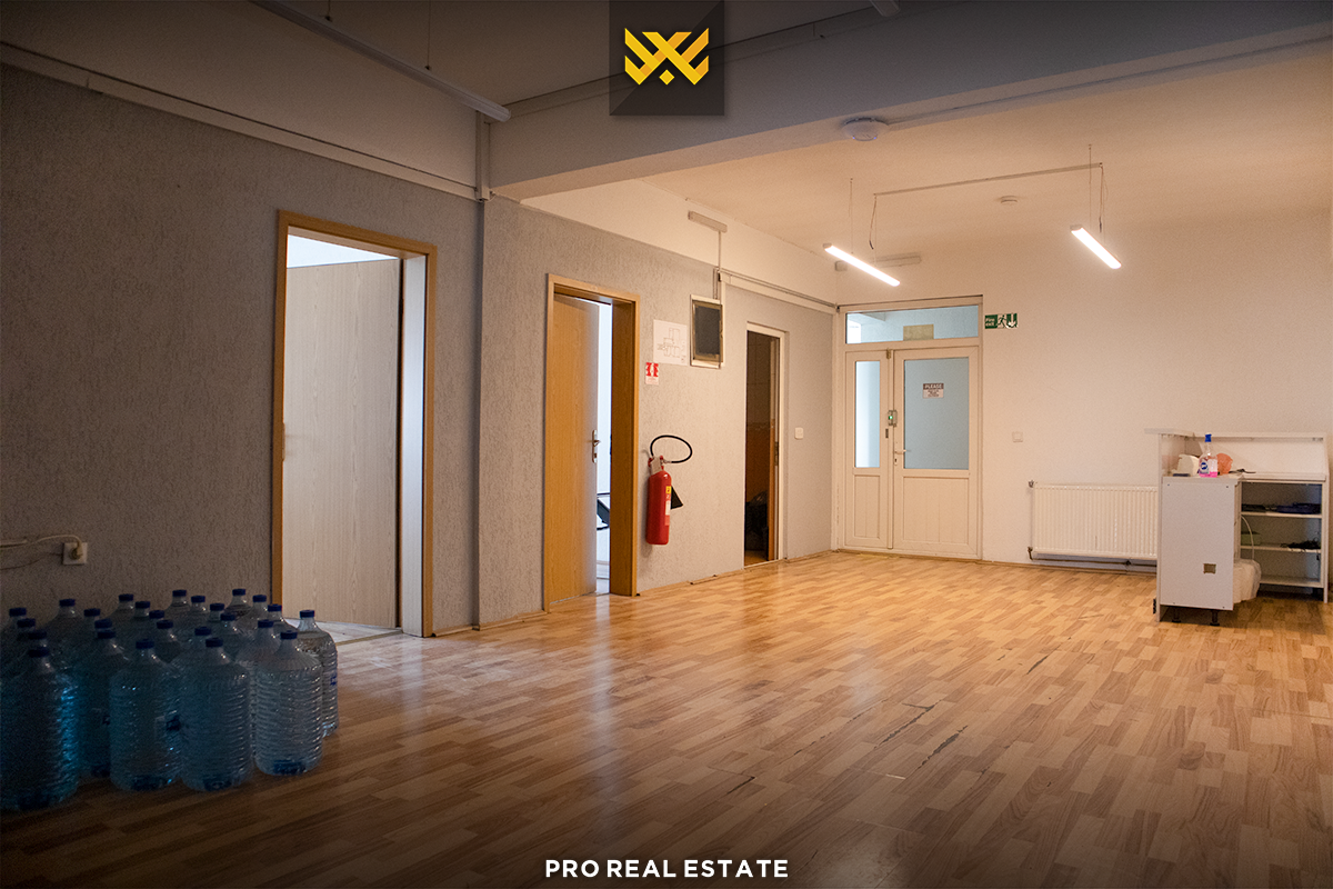 Das Büro hat eine Ausrichtung nach Westen und Osten, bietet ausreichend Tageslicht und verfügt über fünf nutzbare Arbeitsräume, eine Küche sowie zwei Badezimmer.