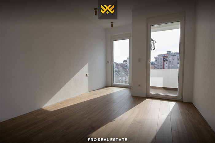Auf der Etage befinden sich 3 Wohnungen mit einer gemeinsamen Fläche von 367m², mit Ausrichtung von allen Seiten, und jede von ihnen hat die gleiche Anordnung der Innenräume; Wohnzimmer, Küche, neun Schlafzimmer, neun Badezimmer und drei Balkone.