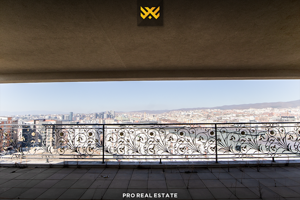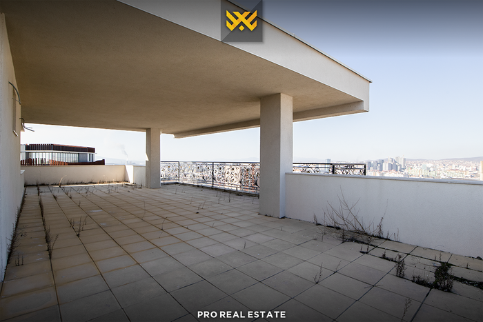 Die Wohnung hat eine Ausrichtung nach Osten, Westen und Norden und verfügt über folgende Anordnung der Innenräume: Wohnzimmer, Küche, drei Schlafzimmer, zwei Badezimmer, ein WC und eine Terrasse mit einer Fläche von 110 m².