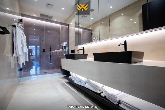Beide Penthouse befinden sich im obersten Stockwerk des Gebäudes mit privatem Zugang zum Aufzug und einem privaten Flur, der die beiden Immobilien verbindet. Das erste Penthouse ist aufgeteilt in einen Wohnbereich, Küche, Essbereich, drei Schlafzimmer (eins mit eigenem Bad und Ankleidezimmer), zwei Bäder und eine Veranda. Das zweite Penthouse ist aufgeteilt in einen Wohnbereich, Küche mit Essbereich, zwei Schlafzimmer, beide mit eigenem Bad, Abstellraum, gemeinsames Bad und Veranda.