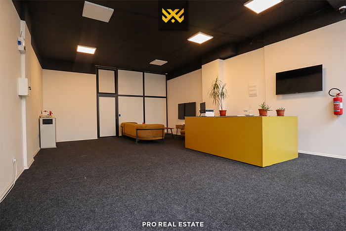 Das Lokal hat eine Ausrichtung nach Osten und Westen und verfügt über drei nutzbare Arbeitsräume und zwei Badezimmer.