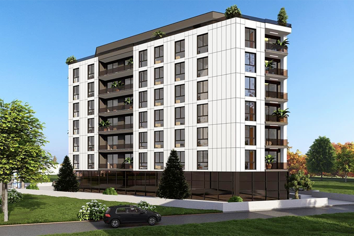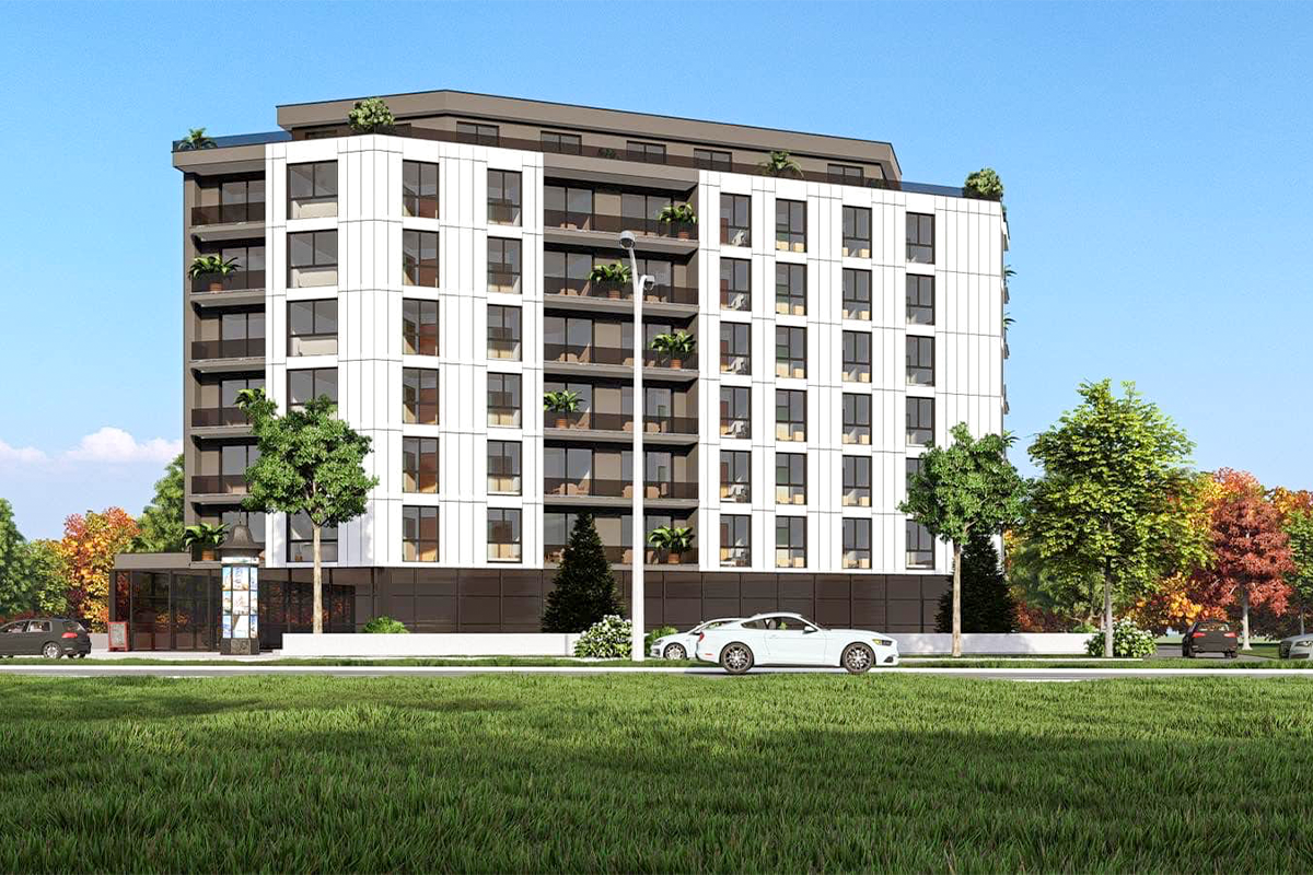 Der Komplex bietet 59 Apartments mit Flächen von 65m² bis 147m², einschließlich eines luxuriösen Penthouse und funktionalen Geschäftsräumen, mit schnellem Zugang zu allen Teilen der Stadt.