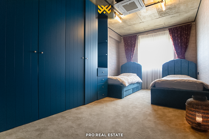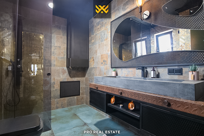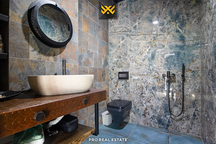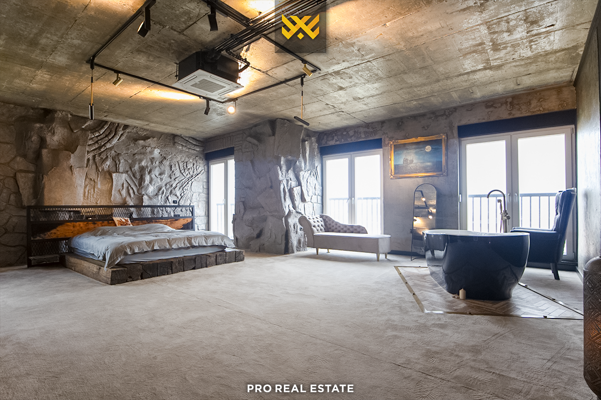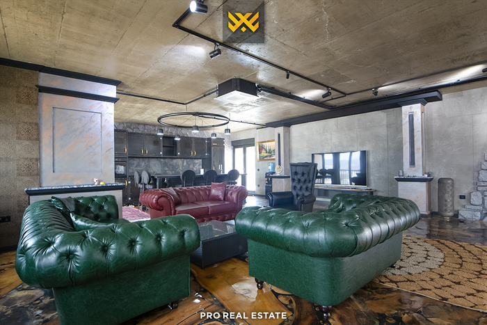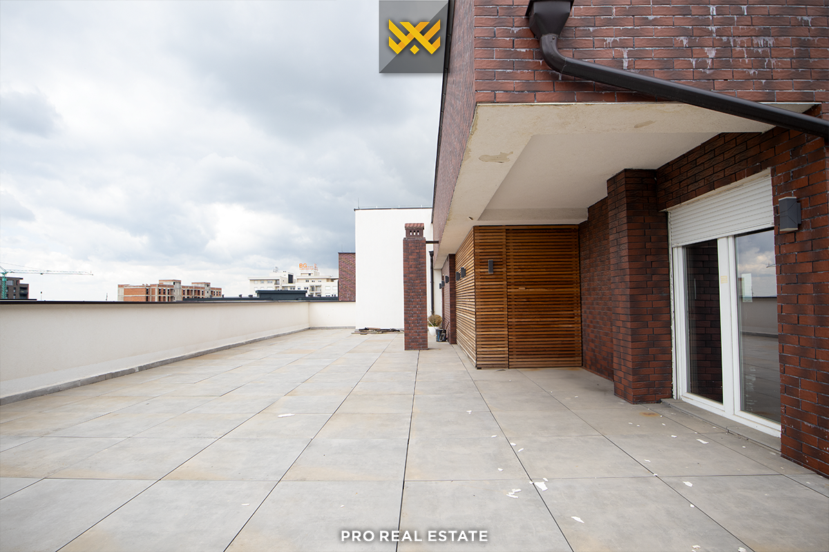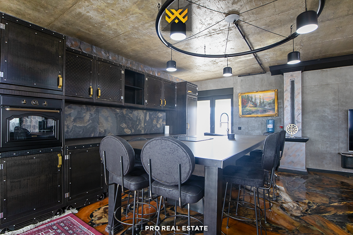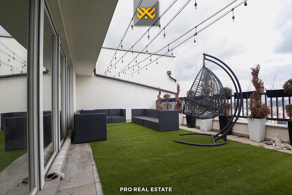 Zum Verkauf steht eine Penthouse-Wohnung mit einer Wohnfläche von 252 m² und einer Terrasse mit einer Fläche von 188,6 m², gelegen in Veternik, in der Straße "Dervish Hima" im Komplex R&Rukolli, gebaut von Rukolli.