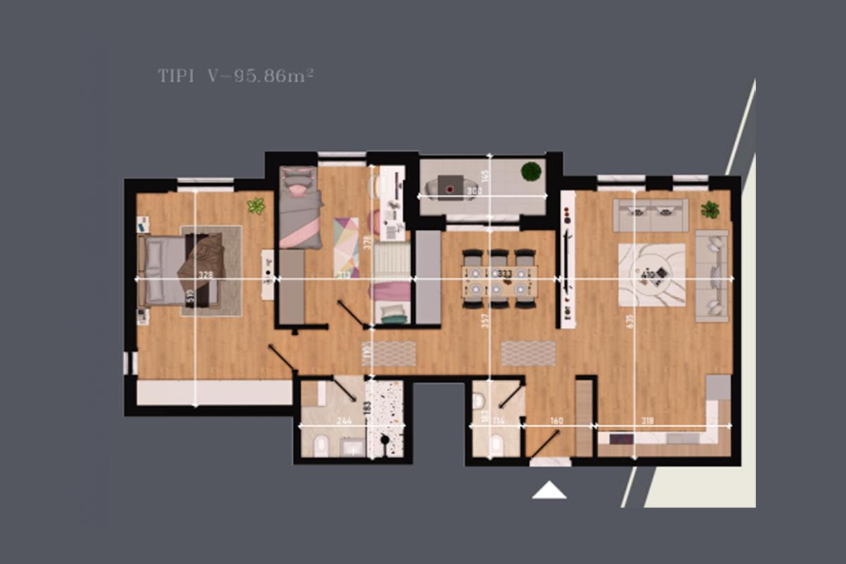 Fünf Wohnungen mit gleicher Fläche in verschiedenen Etagen werden zum Verkauf angeboten, mit einer Fläche von 95,86 m², gelegen in Mati 1, in der Straße "Shaqir Ingrishta", gebaut von Smart Vision, Block A8/01.