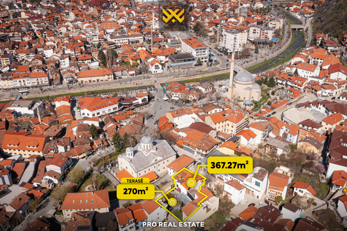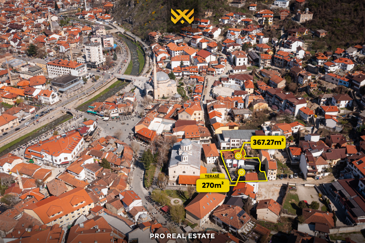 Zum Verkauf steht ein Objekt mit einer Fläche von 367,27 m² + 270 m² Terrasse, gelegen in Prizren, nahe dem Shadërvan.