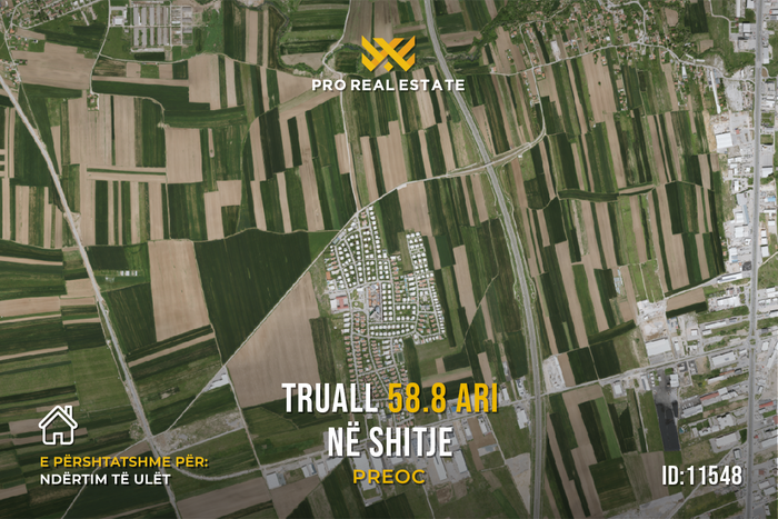 Zum Verkauf steht ein Grundstück mit einer Fläche von 58,8 Ar, gelegen in Preoc, Graçanicë.