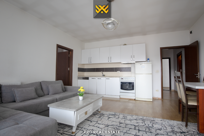 Zur Miete angeboten wird eine Wohnung mit einer Wohnfläche von 48,12 m² und einer Terrasse mit einer Fläche von 19,79 m², gelegen in Lakrishtë, in der Straße "Hekurudhat", bei den Wohnungen von Albanien.