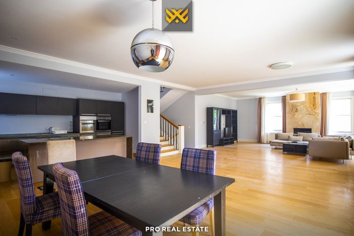 Das Haus ist aufgeteilt in ein Erdgeschoss und zwei Etagen, hat eine Ausrichtung von allen Seiten und bietet somit reichlich natürliches Licht für alle Innenräume. Die Raumaufteilung umfasst: Wohnzimmer, Küche, vier Schlafzimmer und fünf Badezimmer.