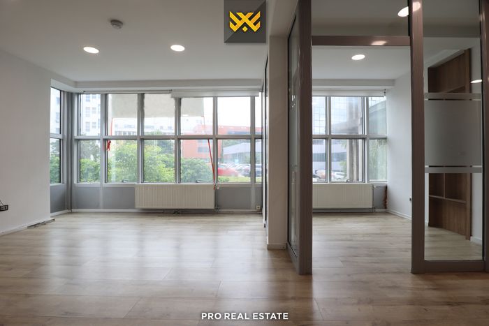 Das Büro hat eine Ausrichtung nach Osten und Süden und verfügt über folgende Anordnung der Innenräume: neun Arbeitsräume und vier Badezimmer.