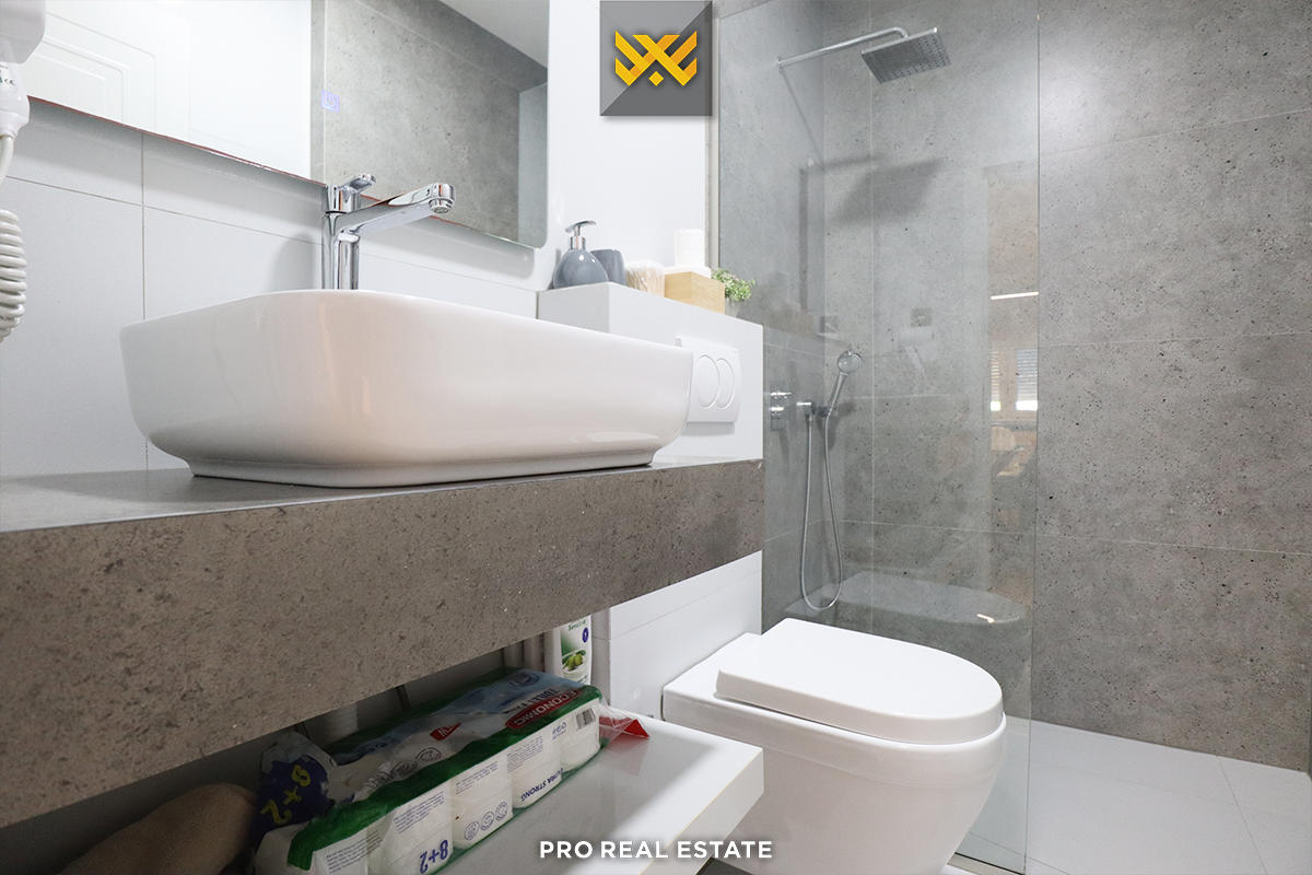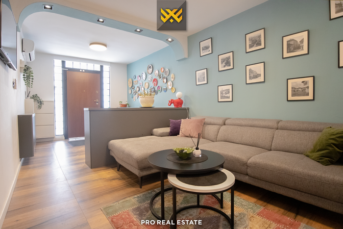 Das Haus hat eine Ausrichtung von allen Seiten, ist aufgeteilt in ein Erdgeschoss und ein Obergeschoss mit folgender Anordnung der Innenräume: Wohnzimmer, Küche, drei Schlafzimmer, drei Badezimmer und Balkon.