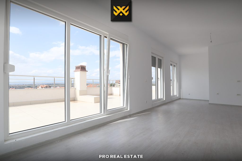 Banesa me sipërfaqe 150m² banim dhe 150m² terasë ndodhet në Dragodan, e orientuar nga veriperëndimi dhe nga jugu. Është tërësisht funksionale dhe posedon qëndrimin ditor, kuzhinën, tri dhoma të gjumit (njëra prej tyre Master), dy banjo dhe një tualet. Sistemin e ngrohjes e ka me energji elektrike. Ndërtesa ku ndodhet banesa është e pajisur me ashensor. Ndodhet në një lokacion shumë të përshtatshëm, pasi ndodhet në një pjesë shumë të frekuentuar të kryeqytetit, me qasje direkte në Qendër.