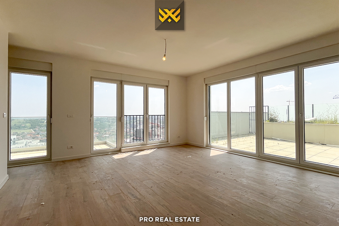 Die Wohnung hat eine Ausrichtung nach Osten und Süden, ist auf zwei Etagen verteilt und hat folgende Anordnung der Innenräume: zwei Wohnzimmer, eine Küche, sechs Schlafzimmer, fünf Badezimmer, ein WC, vier Abstellräume, drei Balkone und zwei Terrassen.