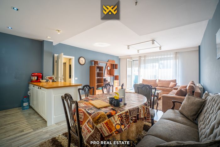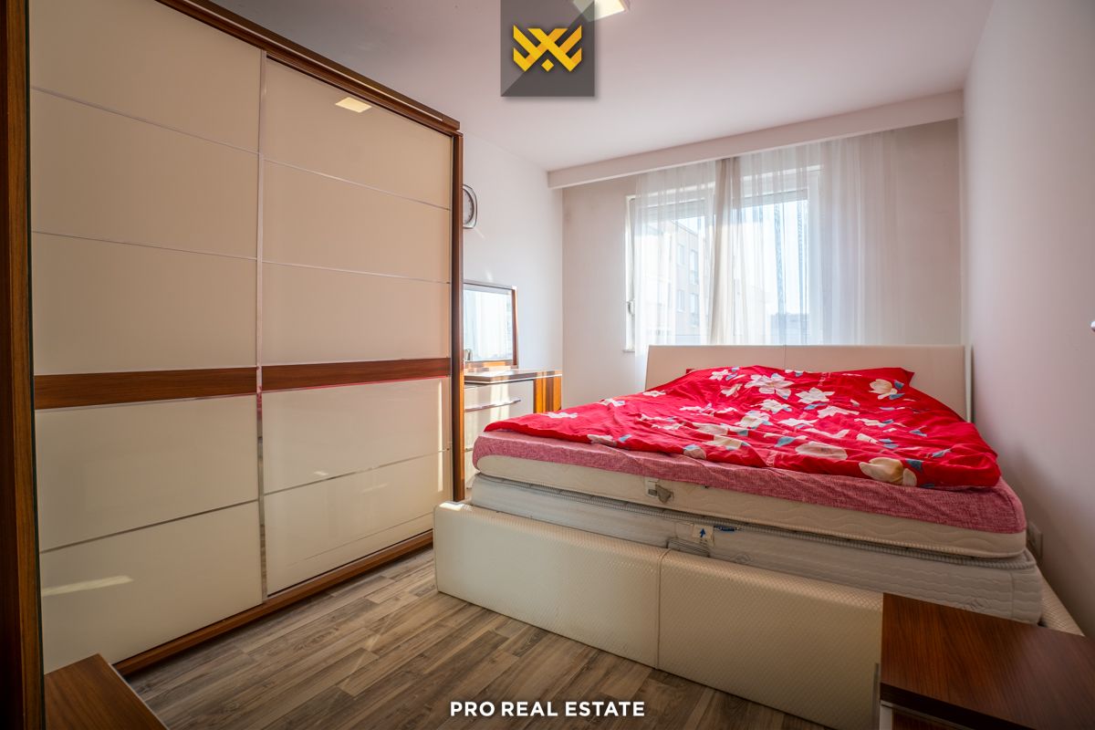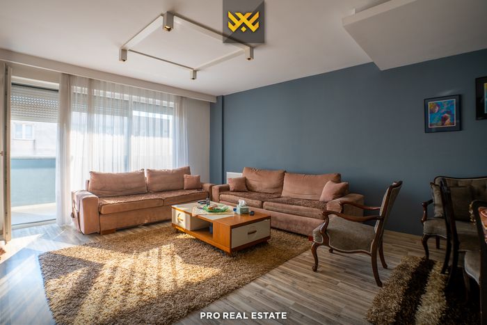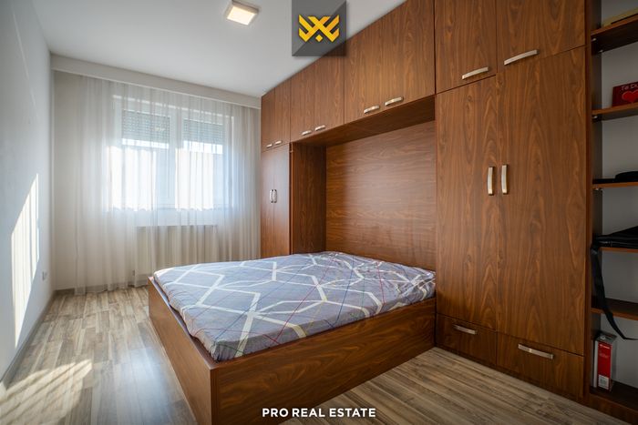 Die Wohnung hat eine Ausrichtung nach Westen und Süden und besteht aus: Wohnzimmer, Küche, zwei Schlafzimmer, einem Badezimmer, einer Toilette, einem Abstellraum und einem Balkon. Alle Räume sind möbliert und funktional nutzbar. Die Heizung erfolgt über Termokos oder elektrisch.