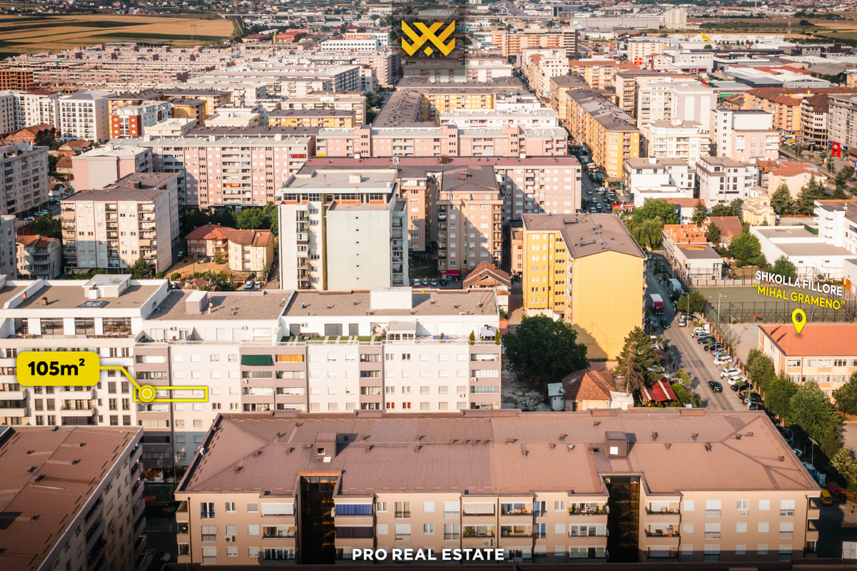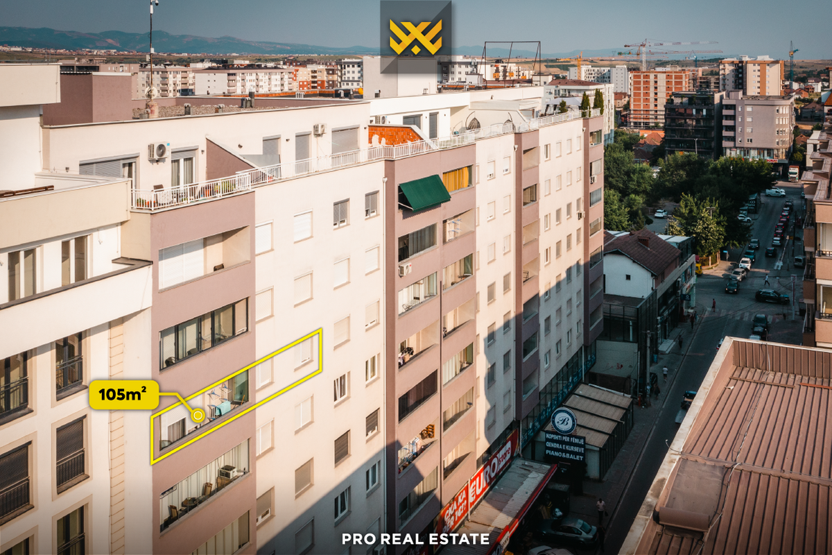 Zum Verkauf steht eine Wohnung mit einer Fläche von 105 m² in Fushë Kosovë, in der Dardania Straße, gebaut von der Firma Uni Project.