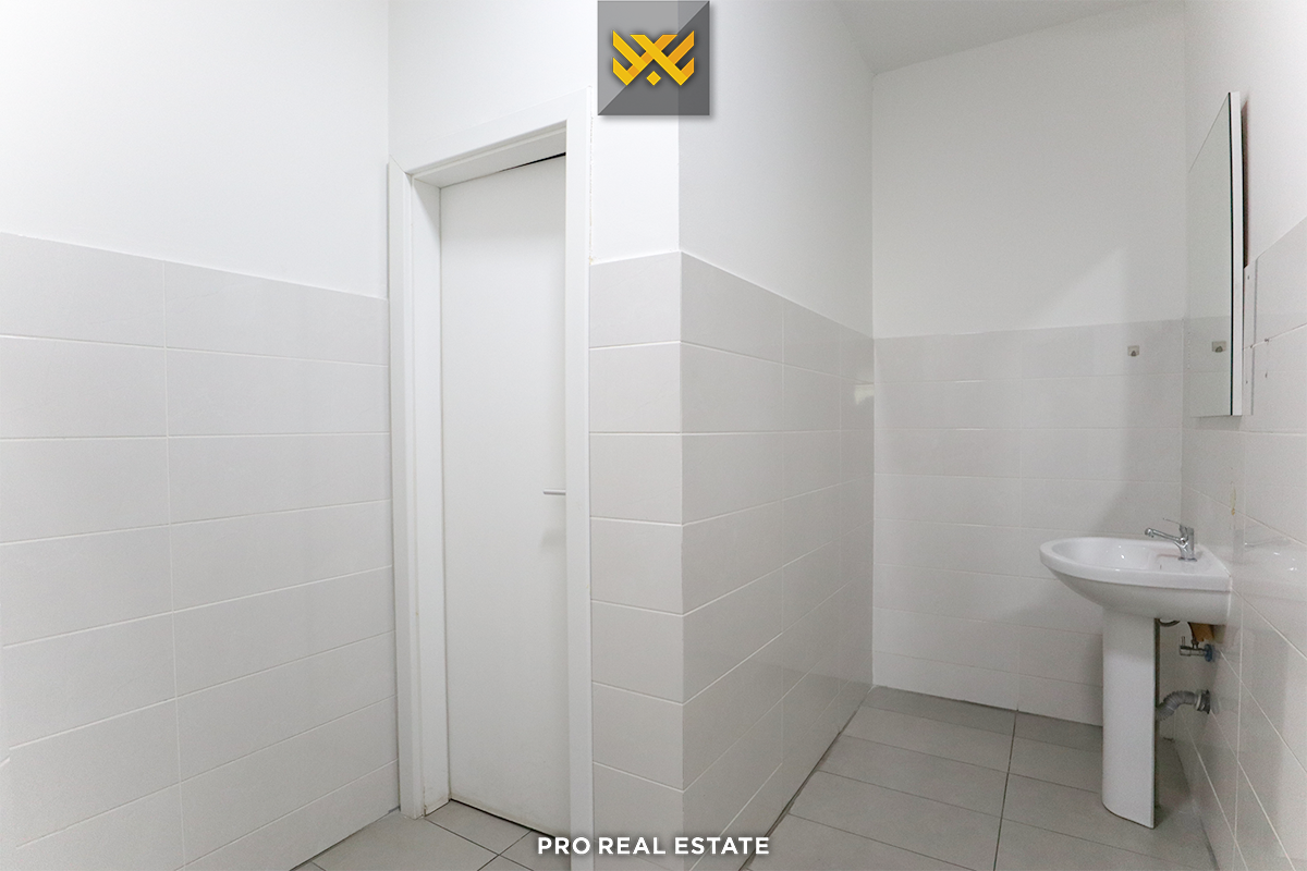 Das Lokal verfügt über einen offenen Arbeitsbereich und zwei Toiletten.