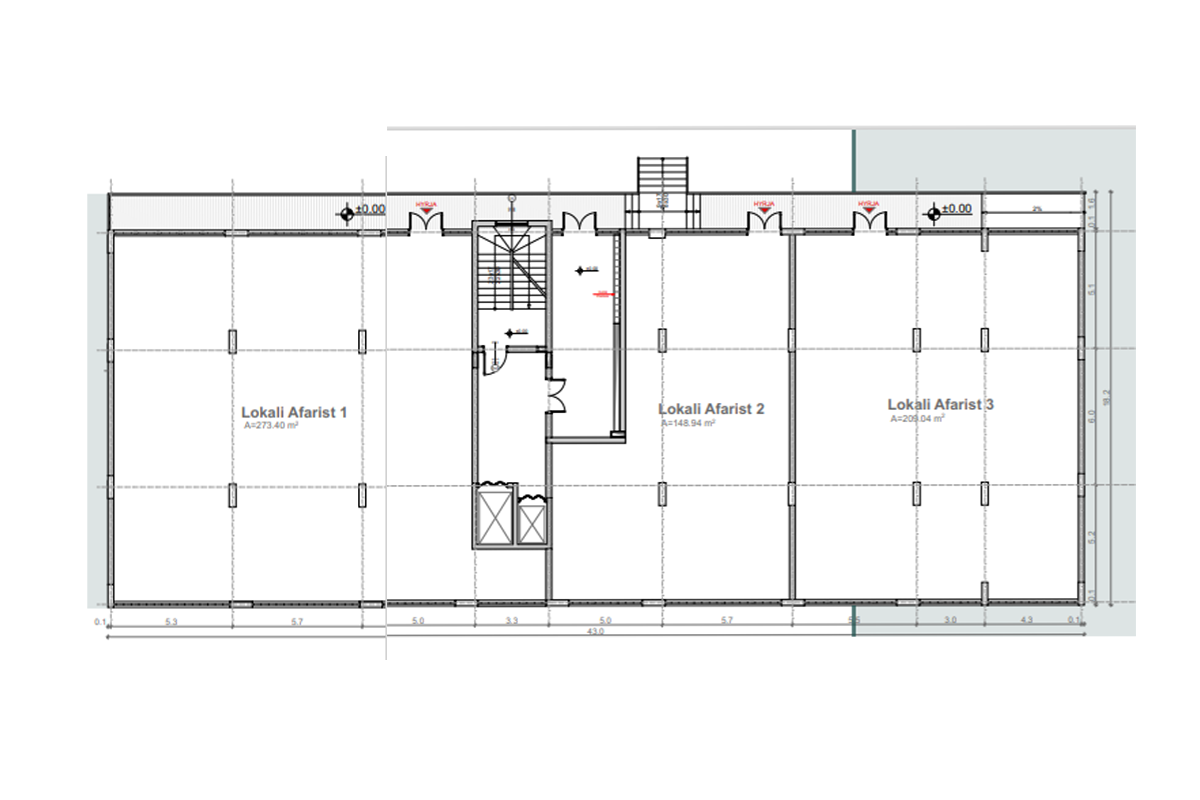 Zur Miete angeboten wird ein Lokal mit einer Fläche von 631,38 m² an der Magistrale Prishtinë - Mitrovicë, bei Eurogoma, gebaut von Universal Bau Group, im Komplex Porta e Prishtinës.