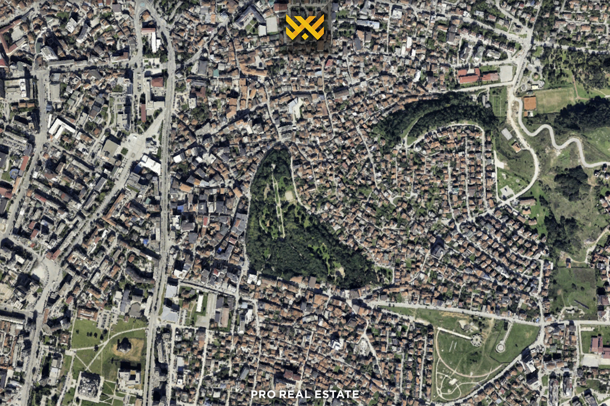 Die Immobilie mit einer Fläche von 420 m² wird zur Miete angeboten und befindet sich in der Nähe des Stadtparks, in der Straße "Rrustem Statovci", bei der IP Petrol Tankstelle.