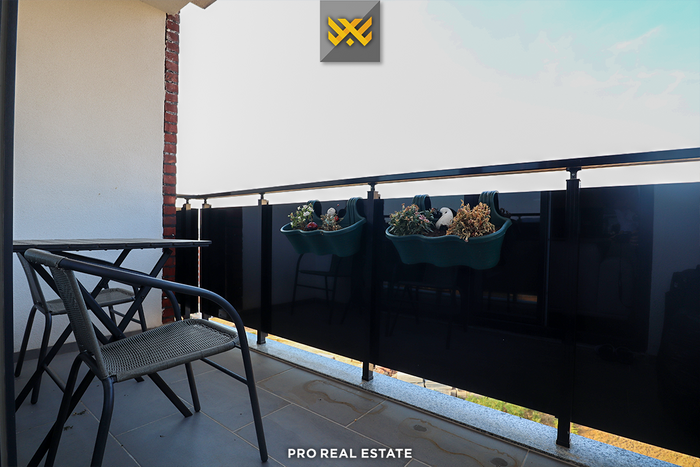 Die Wohnung hat eine Ausrichtung nach Osten und verfügt über folgende Anordnung der Innenräume: Wohnzimmer, Küche, zwei Schlafzimmer, ein Badezimmer, Abstellraum und Balkon.