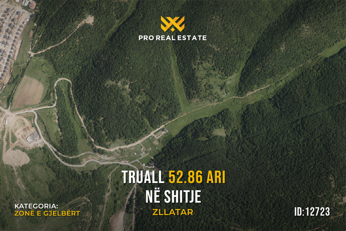 Zum Verkauf steht ein Grundstück mit einer Fläche von 52,86 Ar in Zllatar, Pristina, in der Nähe des Royal Green Residences Viertels.