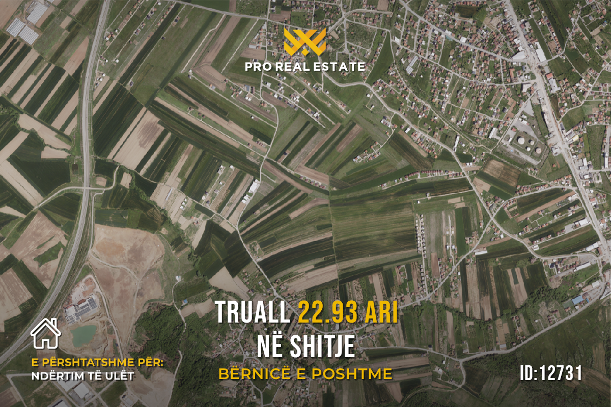 Zum Verkauf steht ein Grundstück mit einer Fläche von 22,93 Ar in Bërnicë të Poshtme, Prishtinë.