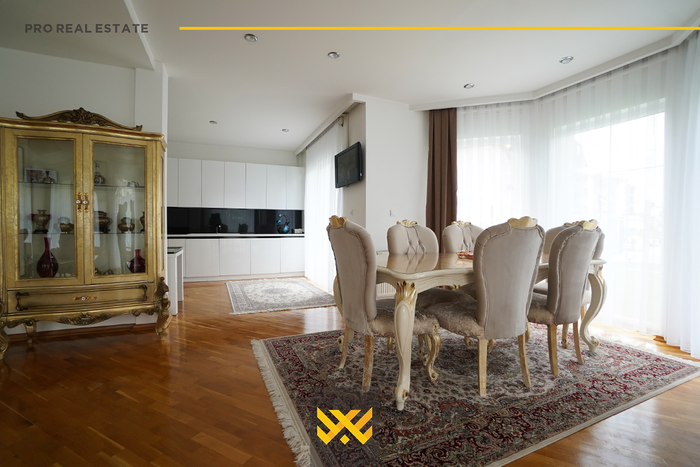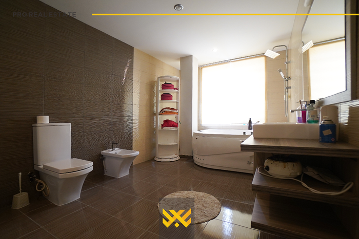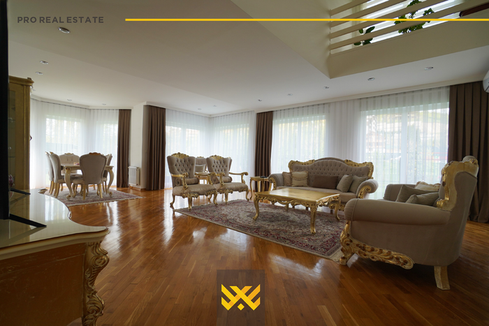 Shtëpia me sipërfaqe 560m² ndodhet në Tokbashqe. Është e mobiluar në tërësi, super moderne, mobilje dhe orendi elegante, unike dhe shumë të veçanta, me kombinime të nuancave të hapura, që i japin shtëpisë ndriçim natyral dhe e bën të duket shumë mahnitëse, e rehatshme dhe komode. Është e ndarë në tri kate dhe ka këtë renditje: kati përdhesë ka qëndrimin ditor, kuzhinën, një dhomë të gjumit (Master), një kuzhinë verore, një banjo dhe një depo, kati i dytë ka tri dhoma të gjumit shumë moderne dhe të strukturuara shumë mirë, si dhe një banjo, ndërsa kati i dytë ka qëndrim ditor, një banjo dhe një terasë. Ndodhet në një truall prej 6.5 Ari. Sistem të ngrohjes ka me energji elektrike, posedon garazhë me hapësirë parkingu të mjaftueshme. Ndodhet në një lagje, e cila ofron kushte shumë të mira banimi, pasi është shume e qetë dhe me qasje të shpejtë në rrugët kryesore të kryeqytetit.