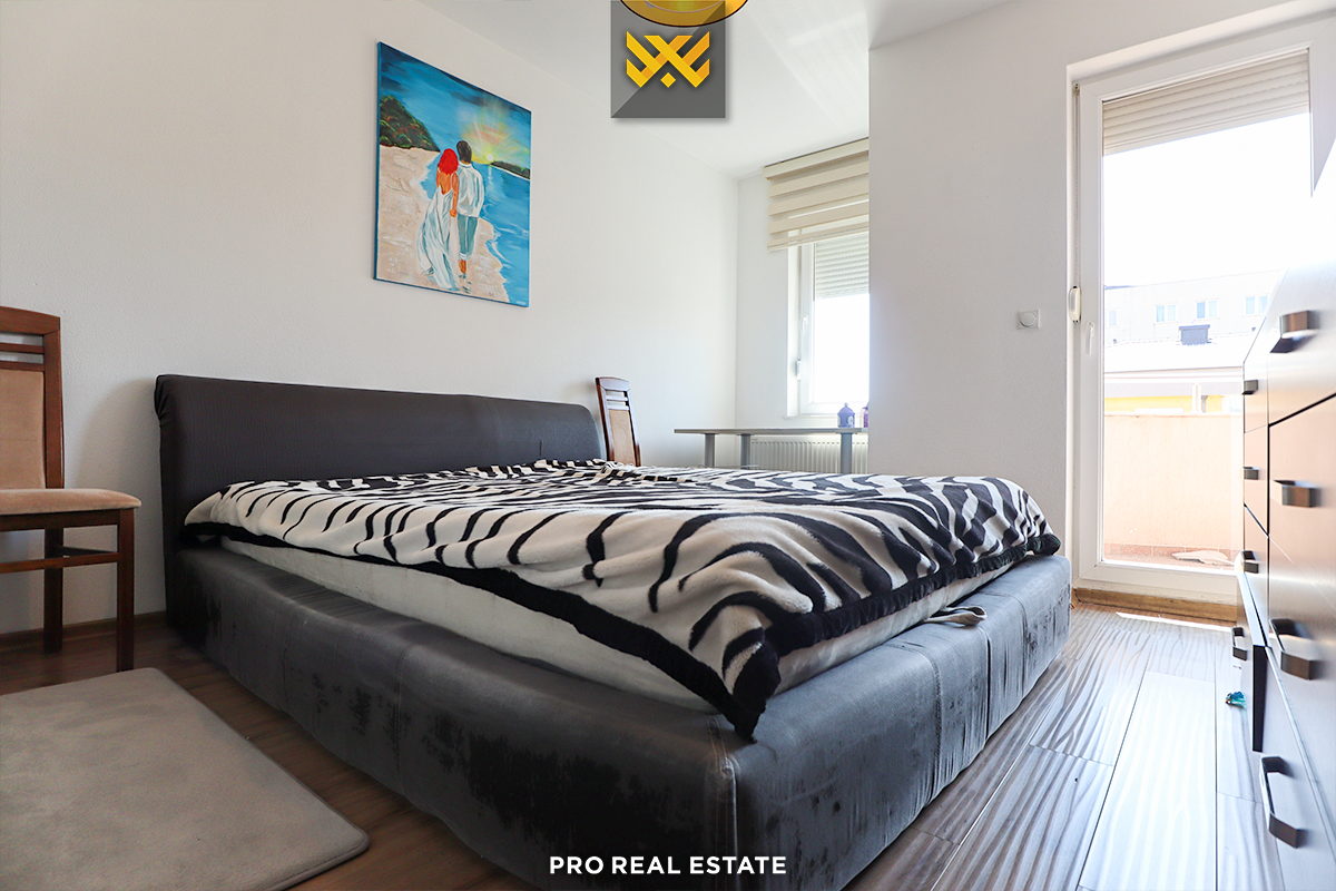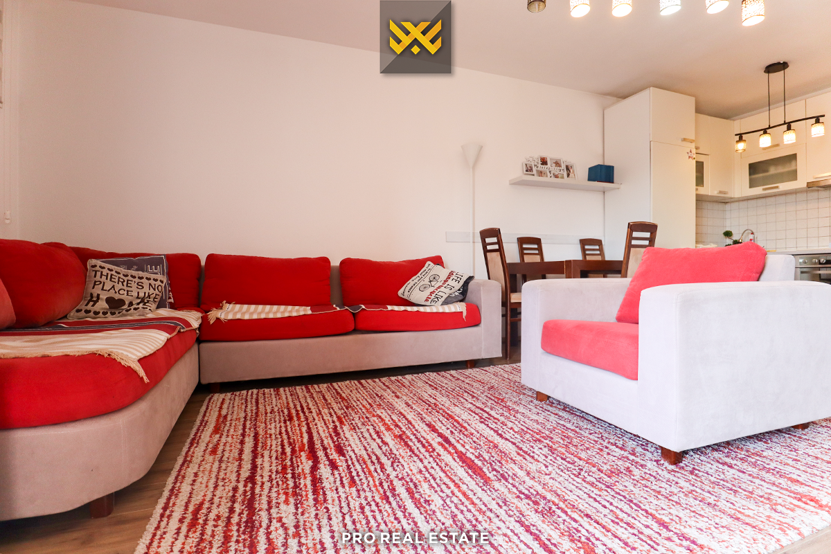 Die Wohnung hat eine Ausrichtung nach Osten und Süden und verfügt über folgende Raumaufteilung: Wohnzimmer, Küche, ein Schlafzimmer, Badezimmer und Balkon.