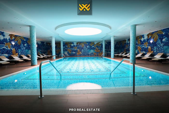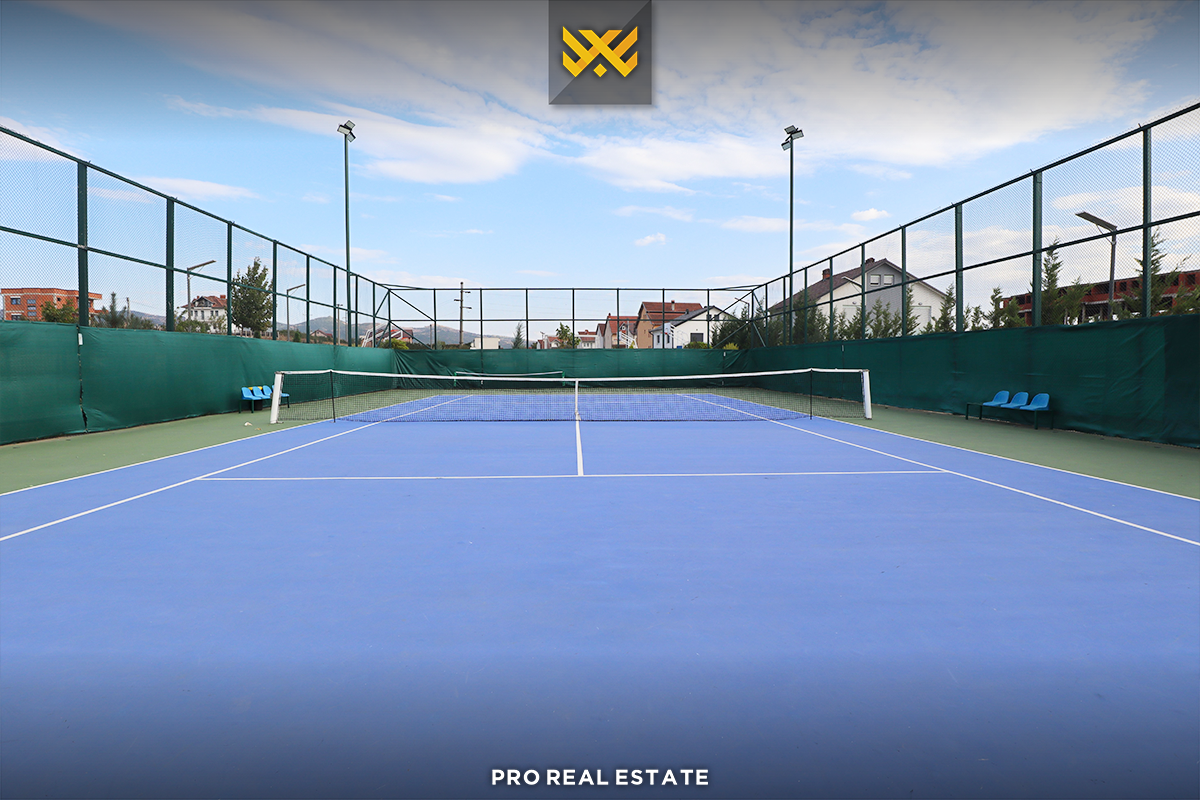 Der Komplex ist mit einem Aufzug ausgestattet, bietet eine Garage und verfügt außerdem über einen Pool, eine Sauna, Tennis- und Fußballplätze sowie Grünflächen.