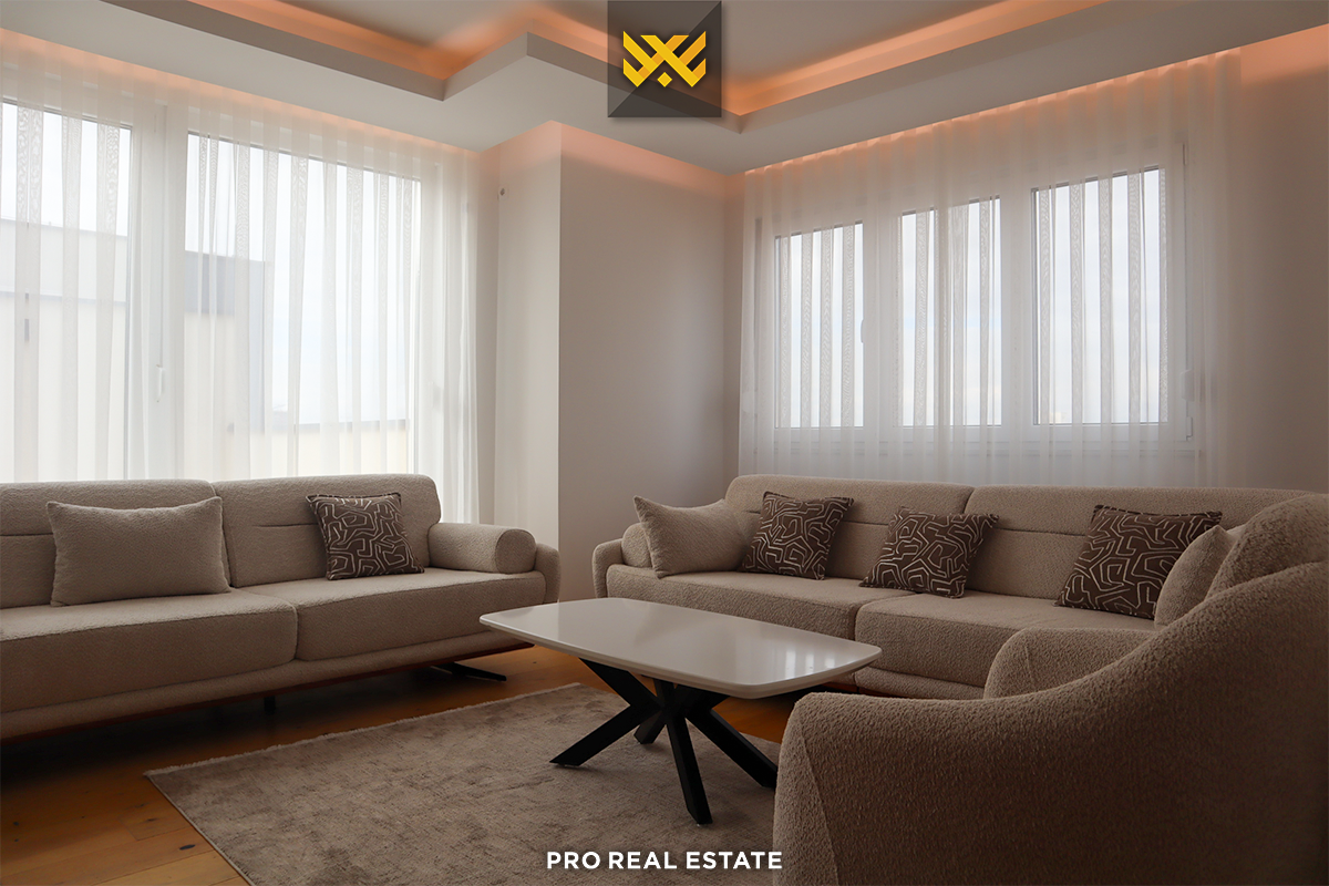 Es wird eine Wohnung mit einer Fläche von 120m² und einer Terrasse mit einer Fläche von 20m² zur Miete angeboten, gelegen im Stadtteil Spital, in der Straße "Astrit Rushiti", im Komplex Pika, gebaut von Pika, in der Nähe von "Doku Bar".