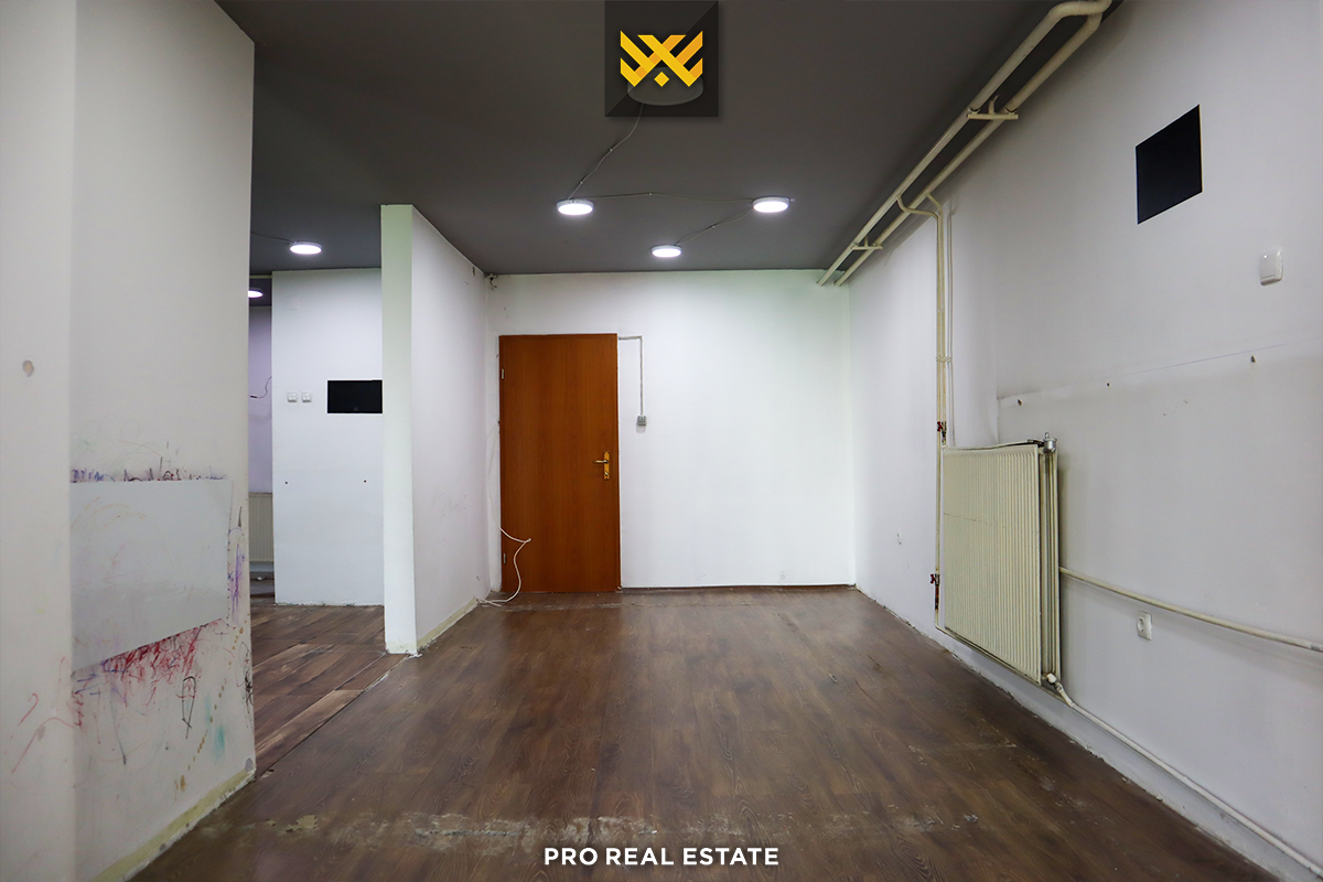 Das Lokal hat eine westliche Ausrichtung, befindet sich im Erdgeschoss und verfügt über drei nutzbare Arbeitsräume, eine Küche, zwei Badezimmer, eine Toilette und einen Lagerraum.