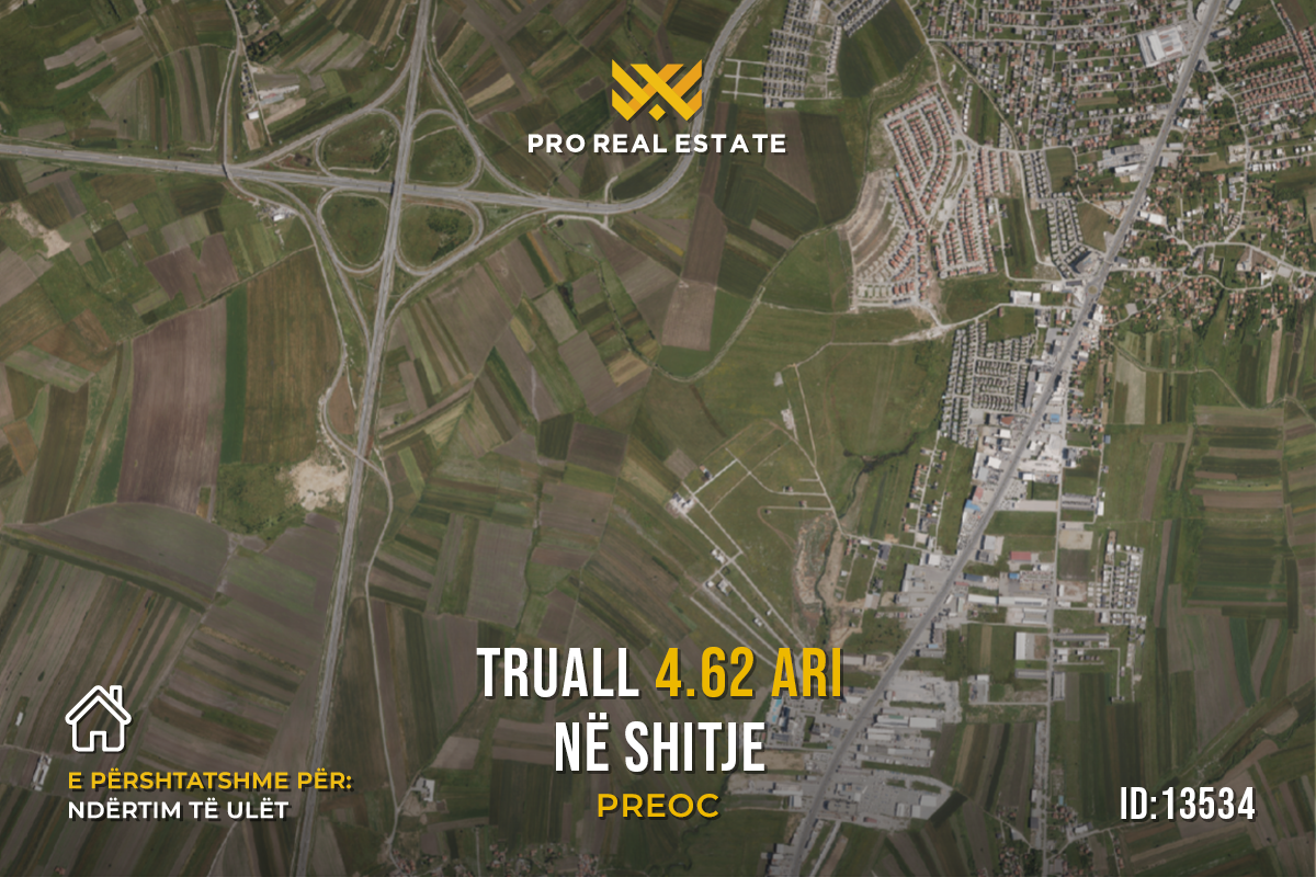 Zum Verkauf steht ein Grundstück mit einer Fläche von 4,62 Ar, gelegen in Preoc, Graçanicë.
