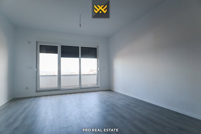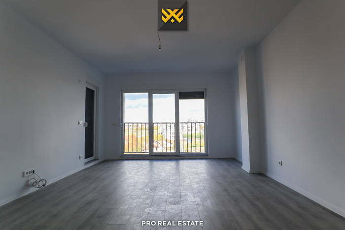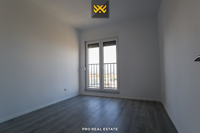 Die Wohnung hat eine Ausrichtung nach Westen und Süden und verfügt über folgende Anordnung der Innenräume: Wohnzimmer, Küche, zwei Schlafzimmer, ein Badezimmer, eine Toilette, einen Abstellraum und einen Balkon.