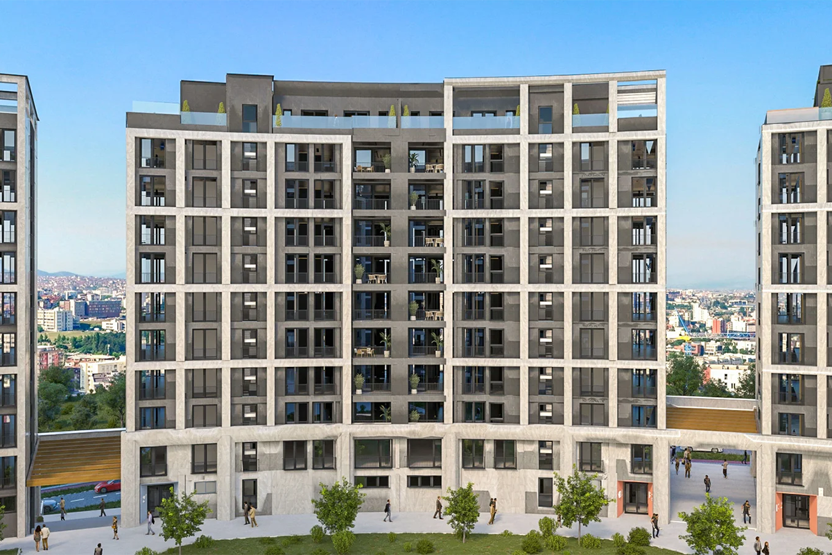 Zum Verkauf angeboten wird eine Wohnung mit einer Fläche von 57,8 m², gelegen in Prishtina e Re, im Komplex Flux Prishtina View, gebaut von Flux.