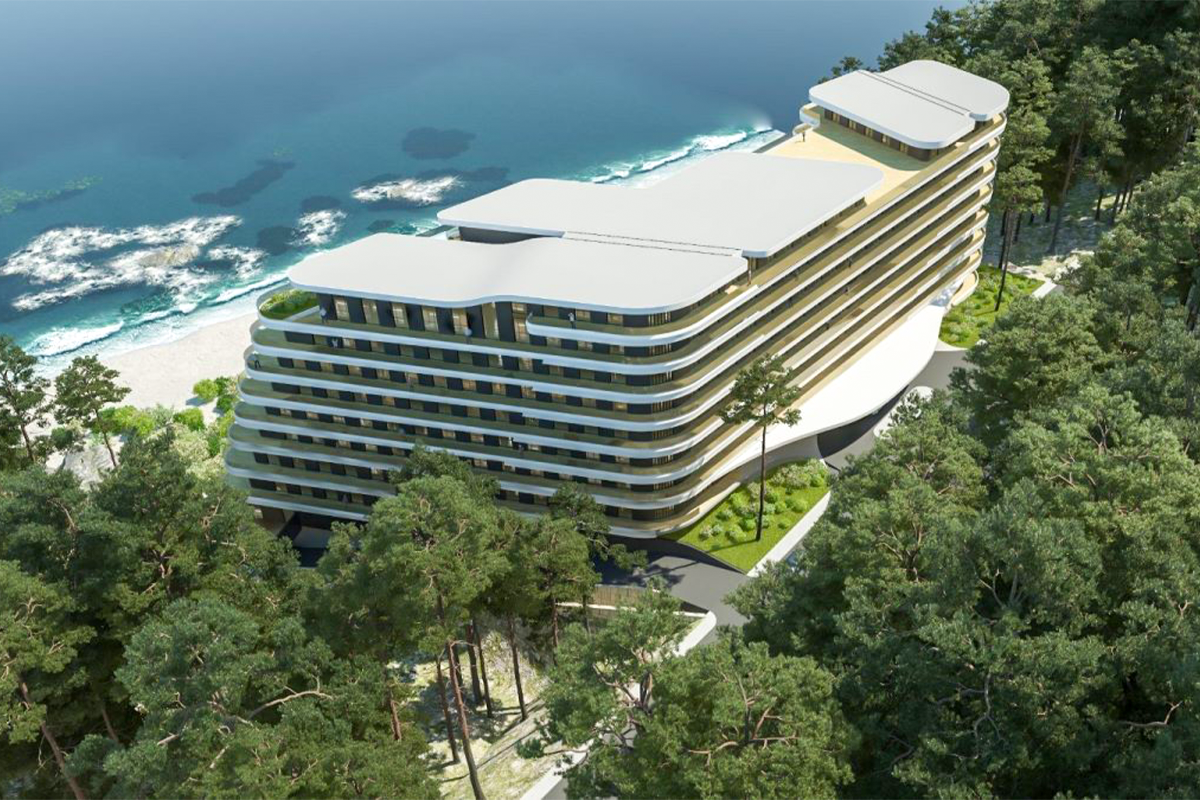 Der Komplex hat 11+1 Stockwerke über dem Boden und 4 Stockwerke unter dem Boden, 80% der Wohnungen mit Meerblick, Flächen von 70-300 m², Hotel, Sommerpool, Winterpool, Spa, Fitnessraum, privaten Strand und ausreichend Parkplätze.
