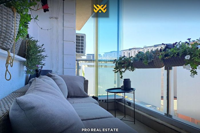 Die Wohnung hat eine Ausrichtung nach Osten und Süden und ist organisiert in ein Wohnzimmer mit Küche, drei Schlafzimmer und zwei Badezimmer.