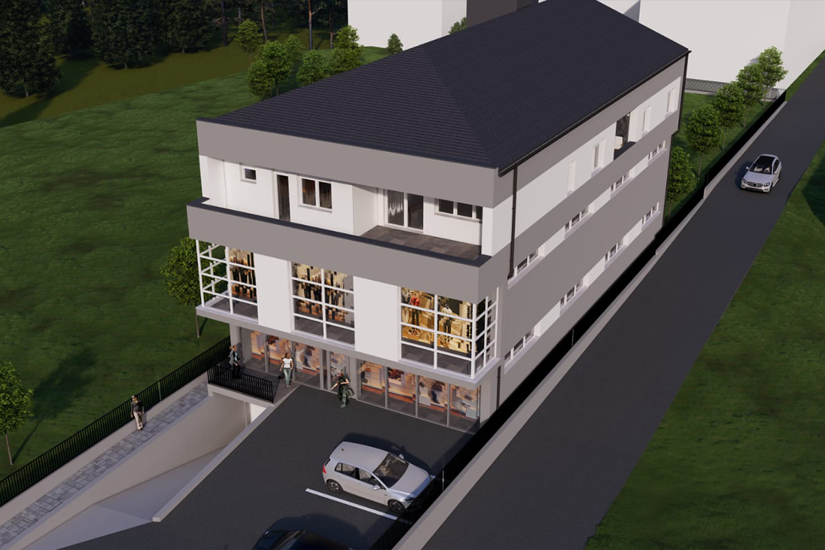 Das Objekt mit einer Fläche von 1500 m² wird zur Miete angeboten und befindet sich in Hajvali, Pristina, hinter dem Step Sports Center.