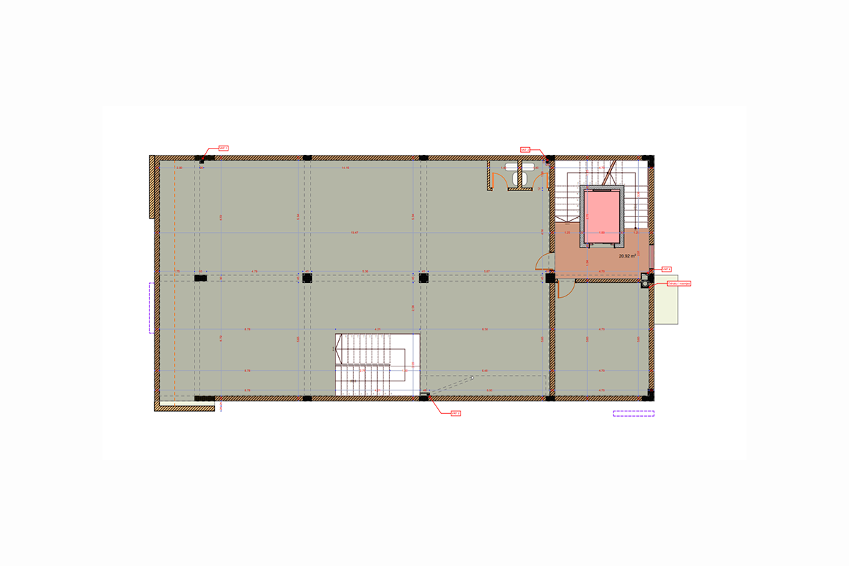 3. Stock (unter dem Dach): 300 m², offener Raum.