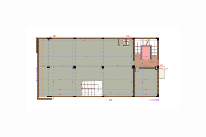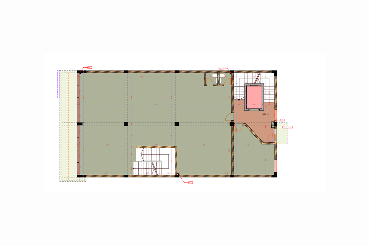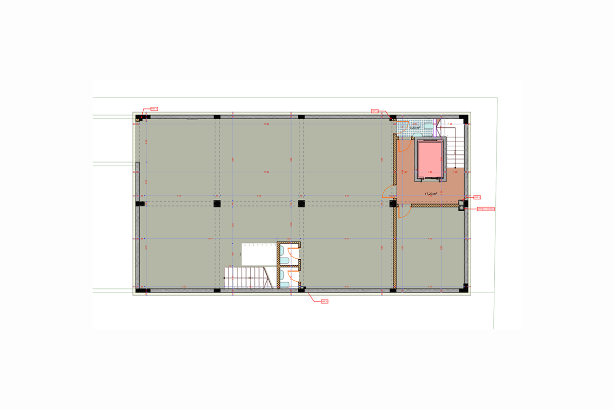 1. Stock: 320 m², 2 Badezimmer und 1 Raum.