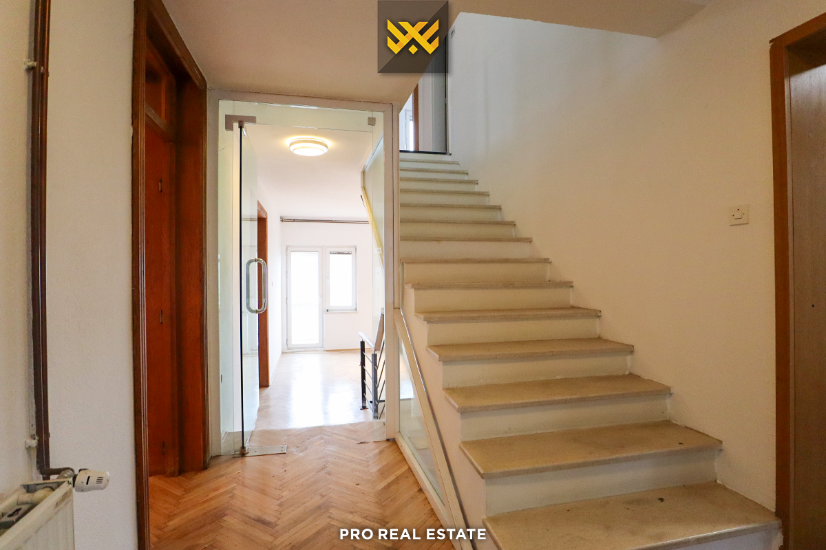Das Haus verfügt über einen grünen Garten, Parkmöglichkeiten und eine Garage und ist auch sehr gut für Büros geeignet.